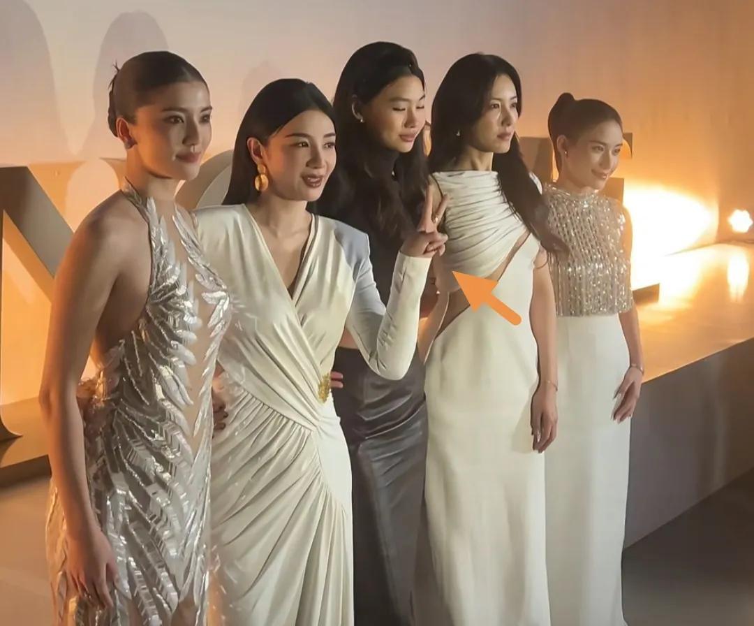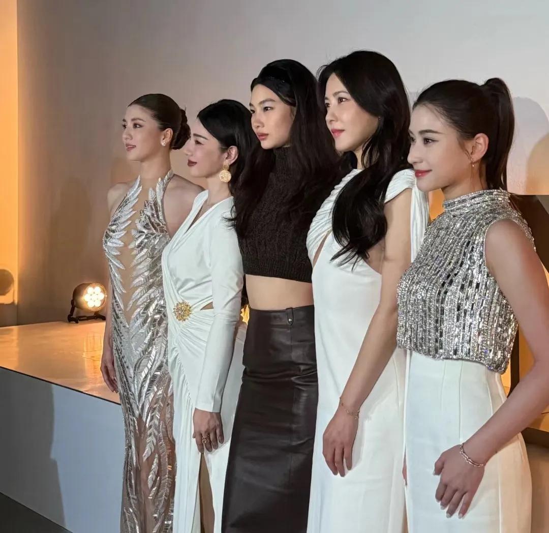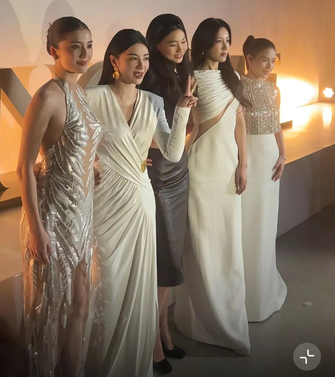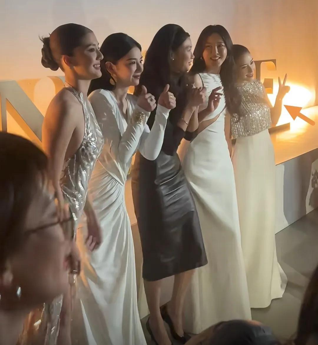 4位女星跟韩国女星郑浩妍一起合影,虽然都没站上C位,但她们的造型跟仪态一点不输C位郑浩妍,她是兰蔻的全球品牌代言人,活动又在韩国举办,所以她这次站C位也算合情合理。