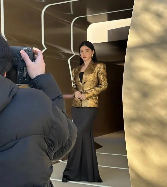 当晚,她一身纯黑套裙亮相,在颜色上,就跟其他女星拉开距离,站上C位更加显眼,她的五官很特别,不是传统美女,但上镜后确实很出众。